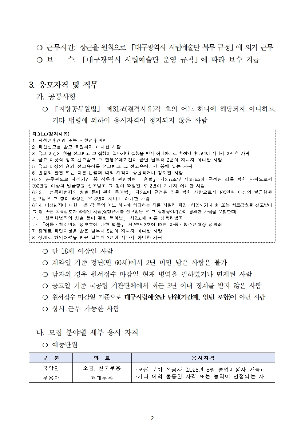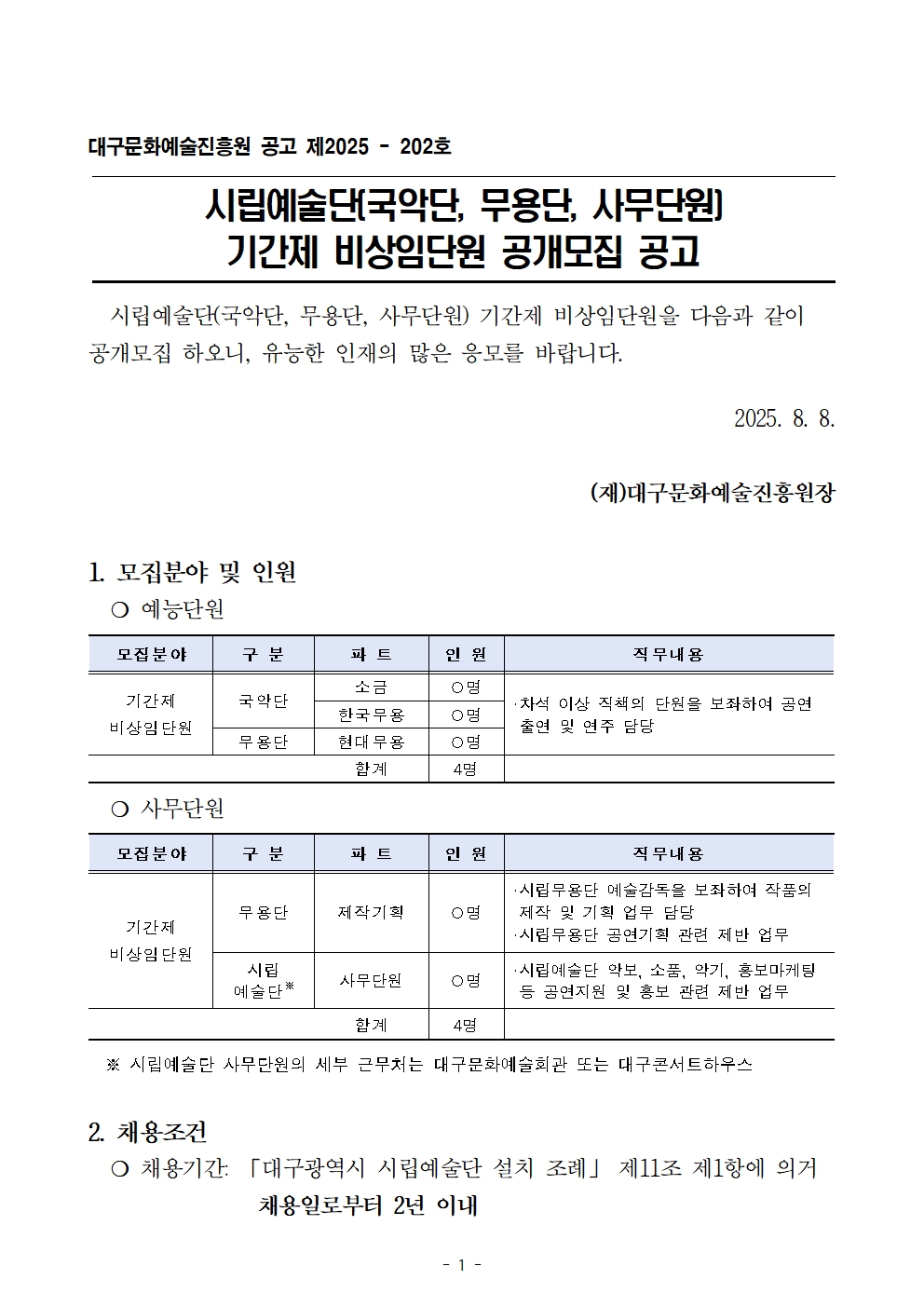 57935| 제목 | 시립예술단(국악단, 무용단, 사무단원) 기간제 비상임단원 공개모집 공고 | ||