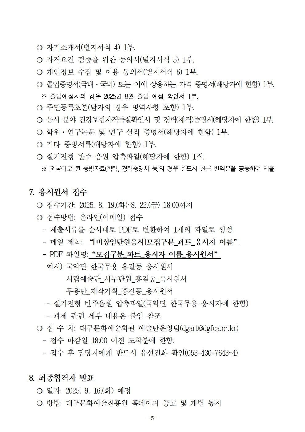 | 다음글 | 2025년도 대구광역시 시립예술단(국악단) 기간제 비상임단원 .. | 문화예술회관 2025-09-05 |