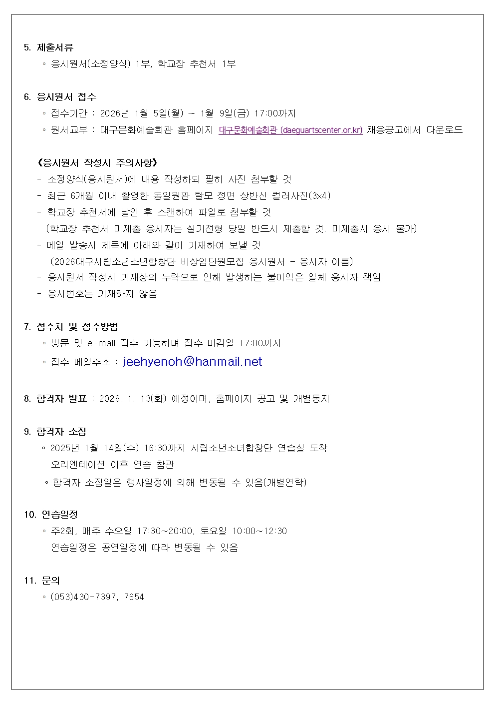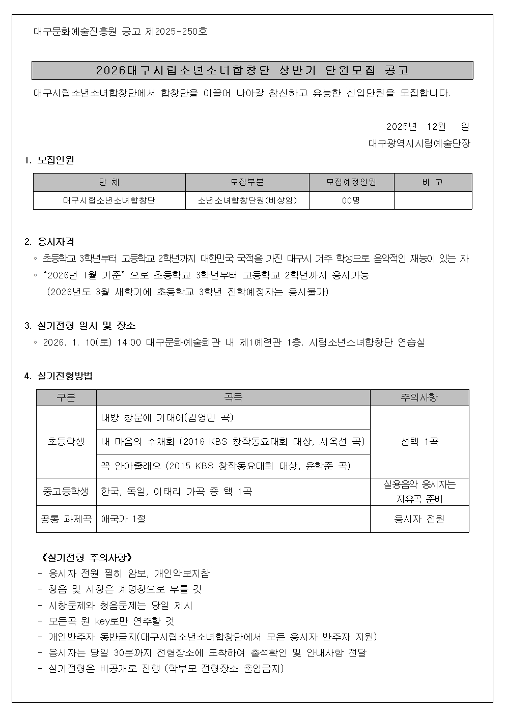 58077| 제목 | 2026 대구시립소년소녀합창단 상반기 비상임단원 모집 공고 | ||