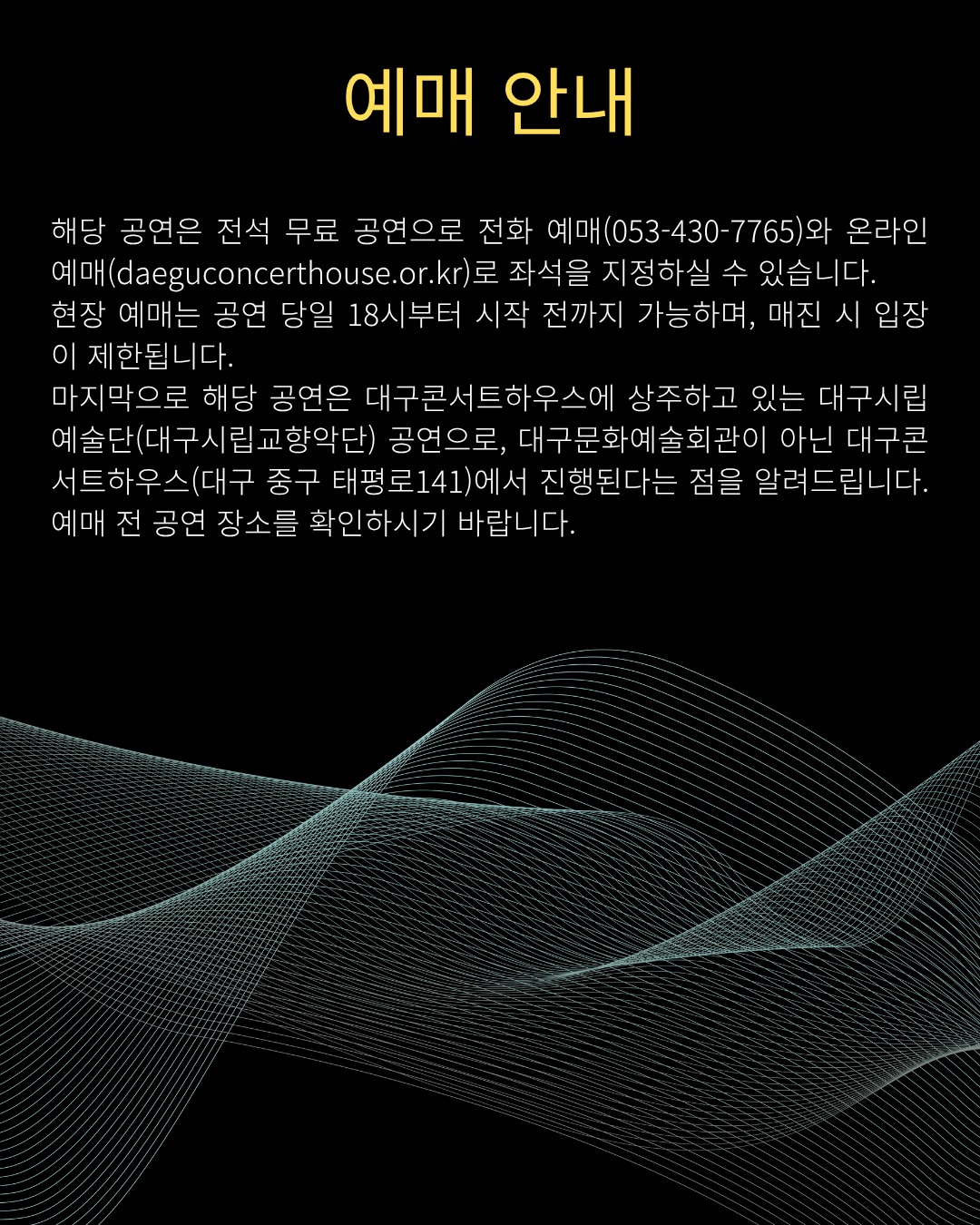 - 주최 대구문화예술진흥원, 대구문화예술회관, 대구시립교향악단