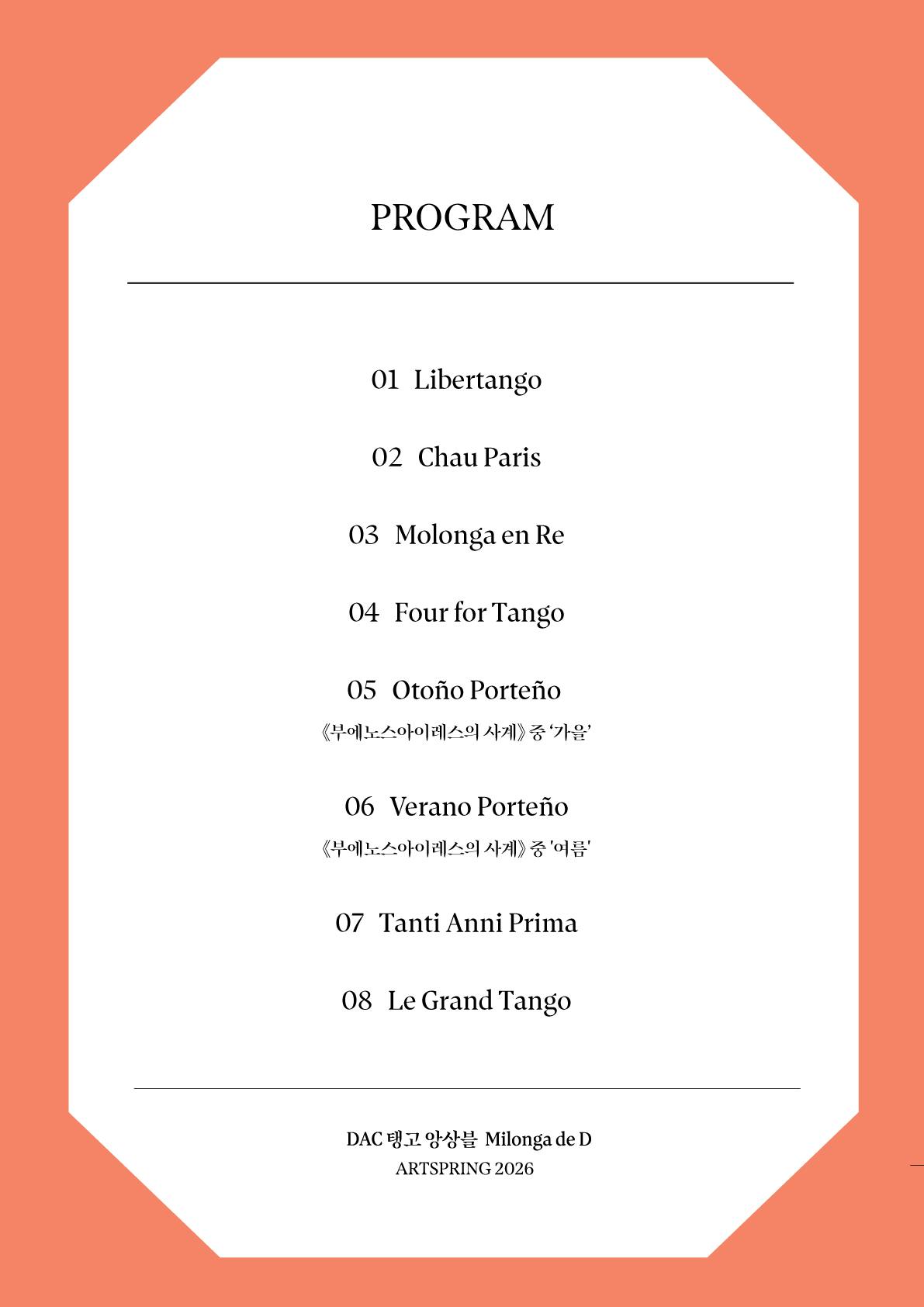 DAC 탱고 앙상블 Milonga de D - 2026 아츠스프링 대구 페스티벌 기획