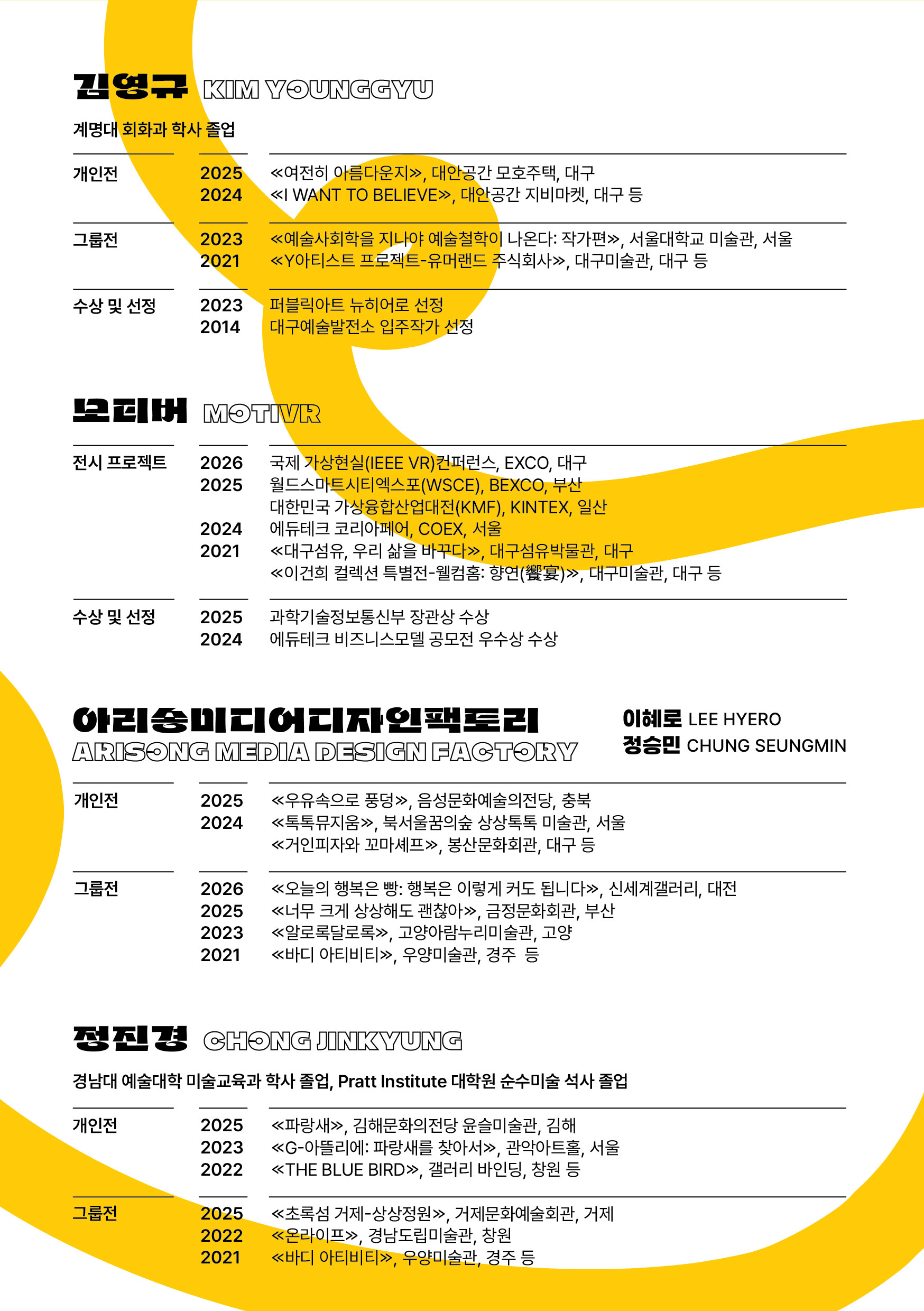 * 참여 작가 : 김영규, 아리송미디어디자인팩토리, 모티버, 정진경