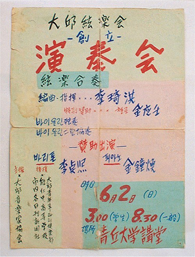 이기홍의 능인중 동료 교사이자 화가 백태호가 그린 대구현악회 창립연주회 포스터